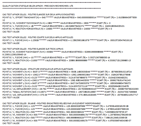 BEAMSTRESS dispose d'un lanceur automatique de cas tests (144 cas tests à ce jour en version 1.1.0) permettant de valider :